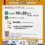 2025年10月23日 / 最終更新日 : 2025年10月23日 uehiro-admin-main 2025年度 大崎市真山地区公民館「地域を学ぶ歴史講演会」のお知らせ 大崎市有備館令和7年度秋季企画展「松平定信の書写収集事業―真山白河家の歴史と書写資料―」に関連して、大崎市真山地区公民館主催の「地域を学ぶ歴史講演会」を2025年11月1日(土曜)午後に開催いたします。詳しくは、下記のポ […]
