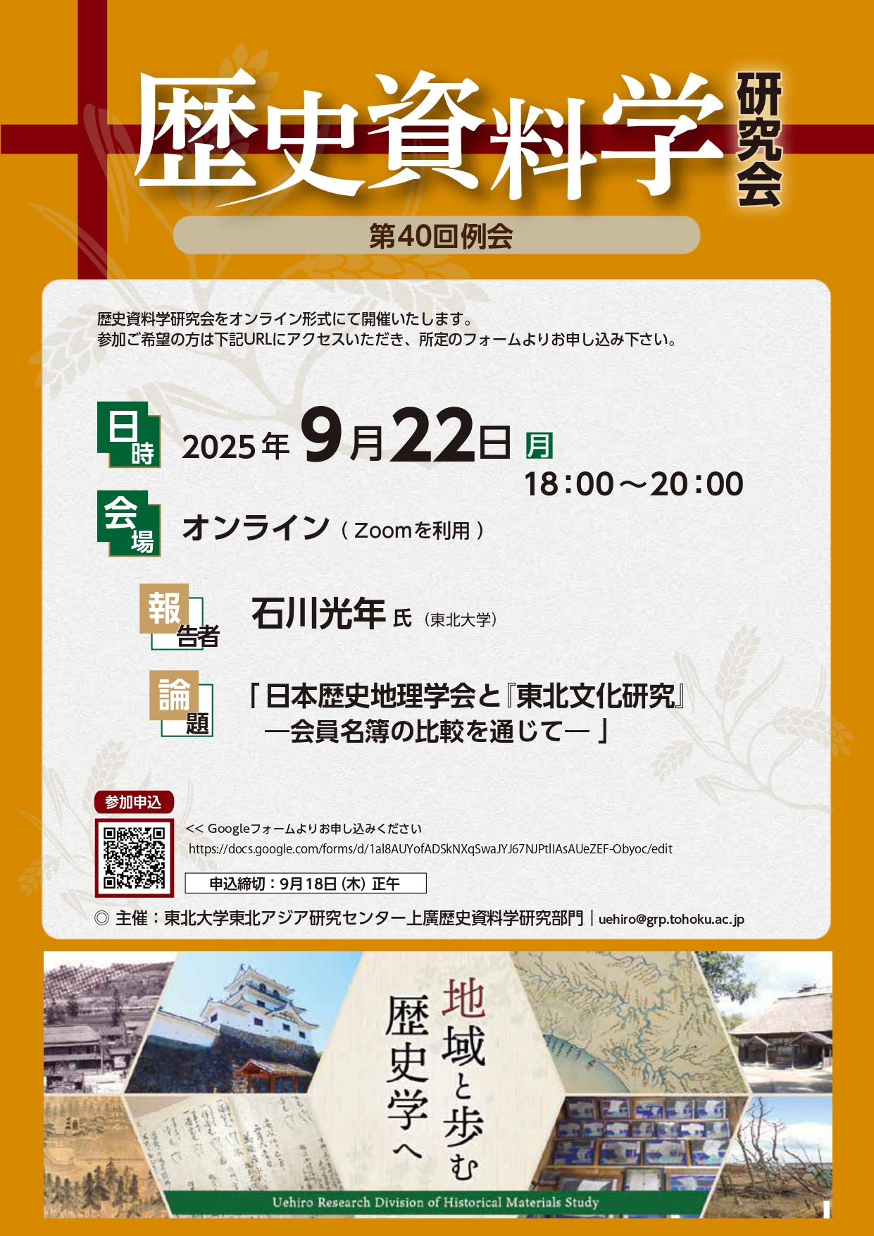 歴史資料学研究会第40回例会(9月22日)のお知らせ